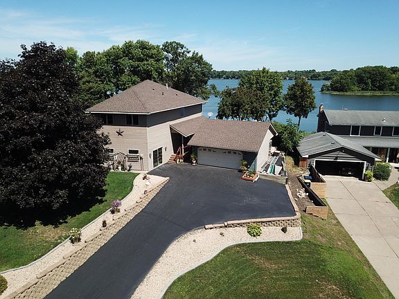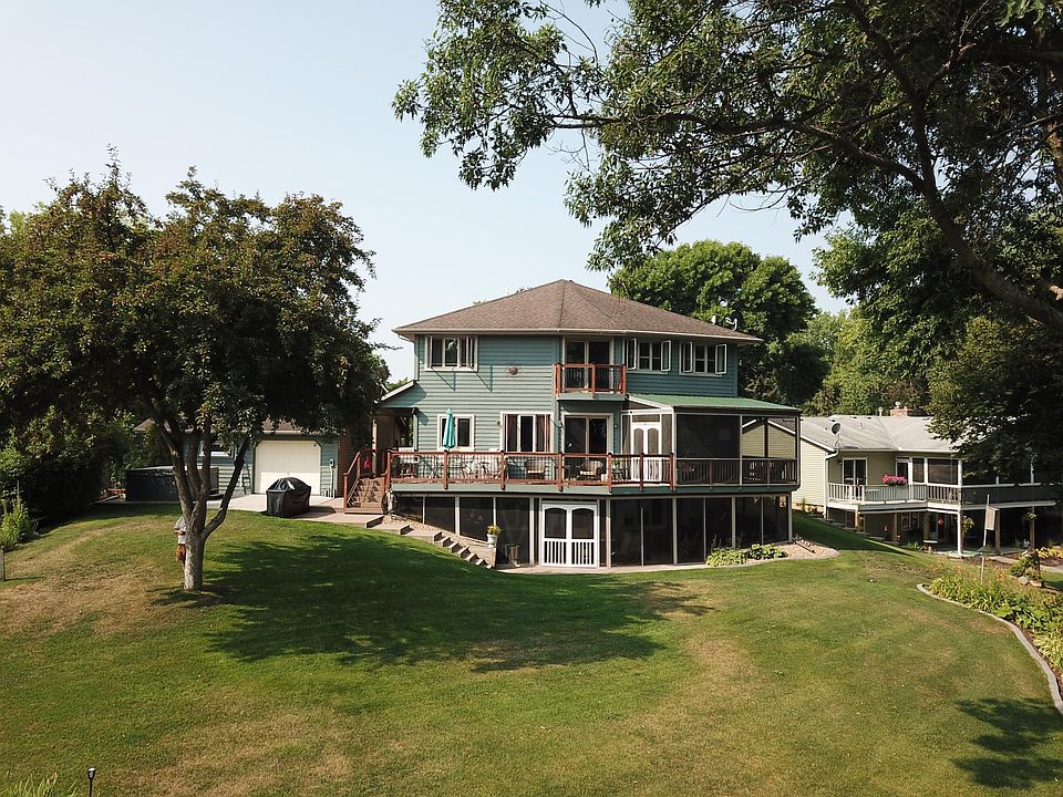 Incredible views from this luxury home on North Center Lake connected to South Center for 1600 acres of quality fully recreational lakeshore. During higher water also connected to Chisago/Lindstrom lake chain for a total of 3000 acres of lake 2nd only to Minnetonka in area near cities. 4 BR 4 BA home with many many upgrades and a huge lakeside deck and 2 screened porches and amazing landscaping with a stone lakefront patio. Kitchen and bar area have a ton of granite countertops and high end cabinets. Gigantic master bedroom with lakeside deck and unbelievable views. City water and sewer and walking distance to quaint towns of Lindstrom and Center City as well as School with fields and Pickleball Courts. Boatable to 4+ restaurants and Almansratt Regional Park, Wilderness like island park, and Ki Chi Saga Parks. Beach has been landscaped and boasts sand with inviting approach and sitting area.