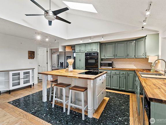 A one of a kind, wonderful home that will capture your heart. Very spacious rooms throughout this beautifully maintained home. Also, so many options. There are 2 main floor dens, a main floor SPACIOUS primary bedroom w/electric fireplace & newer beautifully built bay windows. Vaulted ceilings throughout. Cozy and inviting updated kitchen with double ovens, wine fridge, beautiful wood countertops, large island & dining area with wood burning fireplace. French doors that lead you to a wonderful covered deck with lighting. A very peaceful low maintenance backyard. A partially finished basement w/door to the outside. Upstairs you have a loft area w/2 bedrooms on either side. RV parking w/30-amp service. This is a unique home that you will love.