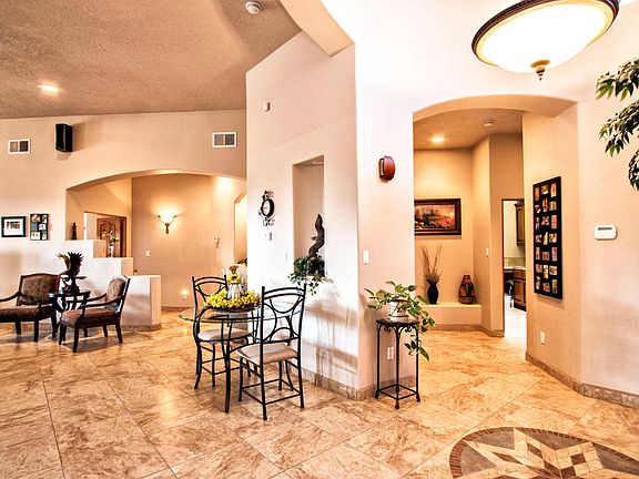 Absolutely gorgeous custom built home. Located on a half acre corner lot with backyard access,RV parking that offers 30 AMP service. Enjoy the magnificent mountain views year round under your new covered patio with a built in BBQ inland and Gas fireplace. This high end home has been exceptionally cared for by one owner. 2x6 construction.The gated courtyard leads you to a custom front door and foyer. Spacious living room with kiva gas fire place, vigas. Gourmet kitchen featuring 5 burner gas stove, double oven, island, granite counter tops, oak cabinets. Guest bath has large bath tub, walk in shower. Large Master bedroom with a door to the covered patio. Master bathroom has a snail shower separate jetted tub and leads you into a over size walk in closet attached to the laundry room.