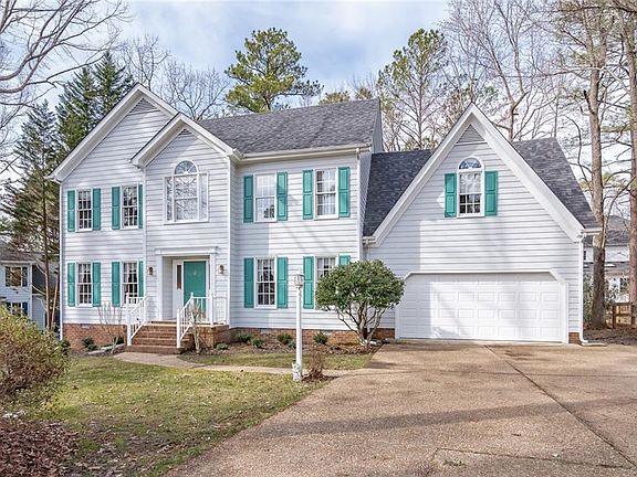 Welcome to 3102 Cove Ridge Rd in the Cove Ridge neighborhood of Brandermill. This 2 story transitional home offers 2,689 sq. ft, 4 bedrooms and 2.5 baths located on a cul-de-sac lot. Floor plan offers formal living and dining rooms with hardwood floors, Gourmet eat-in kitchen with granite counter tops, upgraded maple cabinets, free standing island & tile floors. (Refrigerator to Convey). Family room offers vaulted ceiling and a fireplace with gas logs. Large master suite with walk in closet and master bath with double vanities, corner soaking tub w/ jets and separate shower stall. All secondary bedrooms are generous in size. Improvements include entire interior of home painted, new carpeting & padding throughout the majority of the home, roof 2-3 years old, HVAC 1 -year old, new hot water heater, all new skylights. Exterior offers 2 car front entry garage, aggregate driveway and walkway, rear 2 tier deck. Exterior of home has been power washed, painted and gutters cleaned. Ideal location - close in proximity to shopping, dining and major interstates.