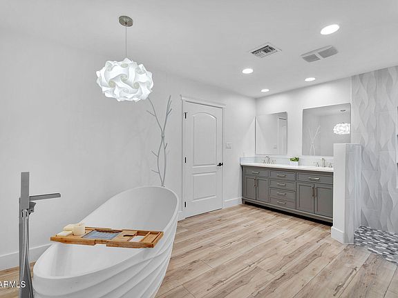 Experience refined living in this beautifully remodeled home, nestled on a 1/3 acre lot in the Biltmore/Arcadia Lite corridor. This home features an inviting front porch with tongue & groove ceilings and a gas fireplace - perfect for relaxing. Inside, an open floor plan and abundant natural light create the perfect ambiance. The chef's kitchen offers double ovens, Wolf 6 burner gas range with a griddle and an oversized island ideal for entertaining. Retreat to the luxurious primary suite with a spa-like soaking tub, walk-in shower, and oversized closet. Secondary master suite adds flexibility for guests or multi-generational living. Additional highlights include bonus/flex room, large room sizes and a backyard with a sparkling pool and pergola. See Docs Tab for a full list of upgrades.