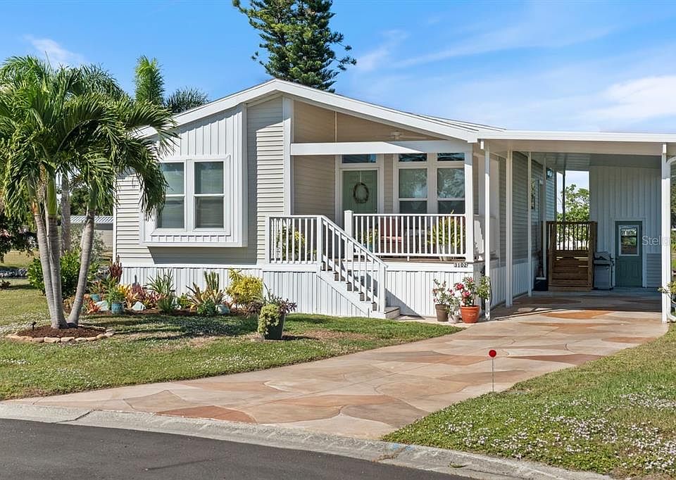 Discover an extraordinary opportunity in the heart of southwest Florida – a brand-new 2024 double-wide manufactured home that feels and lives like a custom single-family residence, yet is being offered at a stunning discount to what the seller paid to build it. Located in the sought-after 55+ community in the Gasparilla Pines subdivision of Sandalhaven Estates in Charlotte County, this beautifully designed 2-bed / 2-bath home rests on its own land (no lot rent) and is listed for just $225,000 — far below the seller’s total investment of approximately $280,000 for the home, carport, and shed. Step inside the top-of-the-line Palm Harbor Homes “Summer Breeze IV” model and you’ll immediately appreciate the elevated finishes: luxury vinyl plank flooring throughout the living, kitchen and baths; 9-foot ceilings with crown molding; ceiling fans in every room; and an open-concept kitchen, living and dinette area featuring a large island, modern design and oversized new appliances (upgraded fridge and range beyond the original builder package). The split floor plan creates a gracious guest zone up front and a private owner’s retreat at the rear overlooking the peaceful pond. The primary suite includes dual vanities, a walk-in shower and spacious walk-in closet; the guest bath offers a tub/shower combo and single vanity. Outside you’ll find a freshly built 2024 carport and an 8 × 10 shed with built-in shelving—ideal for extra storage, hobbies, or gear. The front porch features wood-look flooring and a ceiling fan, offering classic southern coastal charm where you can relax and enjoy your surroundings. Built to HUD Wind Zone III, exposure C standards this home provides peace of mind and long-term quality. The extremely low HOA of just $200 per year (approximately $16.67/month) adds tremendous value. The park is pet-friendly with no breed or weight restrictions—perfect for your furry companions. Beyond the home, the location is simply outstanding. Situated within minutes of six environmental preserves—including the spectacular Amberjack Environmental Park on Gasparilla Pines Blvd, Charlotte County, FL —you’re immersed in nature, kayaking launches, birding, hiking and peaceful water views. The nearby Gasparilla Sound–Charlotte Harbor Aquatic Preserve offers rich estuarine waterways, abundant wildlife and exceptional fishing and paddling opportunities. For lovers of sand and surf, you are equidistant to the pristine beaches of Boca Grande and the charming shores of Englewood Beach / Manasota Key—perfect for weekend escapes or daily breezy strolls. And for golf lovers, the area is a true paradise: from the acclaimed Riverwood Golf Club in Port Charlotte (an 18-hole championship layout) to numerous other highly-rated public courses within a short drive. Dining is diverse and plentiful, with coastal-style seafood restaurants and local favorites just minutes away. If you’ve been searching for that “steal of the century,” this listing delivers amazing value: a fully constructed 2024 home, premium upgrades, lake/pond view with fishing access, no lot rent, low HOA, pet-friendly community, and a location that combines nature, beach lifestyle and recreation—all for $225,000, far below the original build cost. Whether you’re looking for a full-time residence, a vacation home or a rental (with association approval) this property checks every box. Don’t let this rare combination slip away—schedule your visit today and claim the lifestyle you deserve.