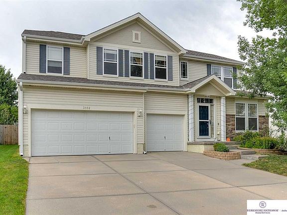 Don't miss out on this 4 bed 3 bath 2-Story in Elkhorn School District! Great open floor plan with soaring ceilings. Main floor features 2 living rooms and office! Beautiful updated kitchen with stainless steel appliances, tiled backsplash, island, granite countertops, and walkout to backyard deck! Second floor boasts 4 large bedrooms and 2 full bathrooms - including huge master suite with fireplace, double vanity sinks, and walk-in closet! Enjoy the private fully fenced backyard with deck - perfect for entertaining. Amazing price for the square footage! New roof (2016), rear windows (2016), and A/C (2016). Great location with easy access to Dodge! AMA.