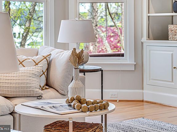 Nestled on a quiet cul-de-sac in one of Arlington’s most sought-after neighborhoods, Rock Spring, this stunning Shingle Style home offers an exceptional blend of classic design and modern updates. With a welcoming flagstone front porch and a generous front yard, this home radiates curb appeal and neighborhood charm. The street’s shared basketball hoop adds to the friendly community vibe, making it the perfect place to call home. Step into a bright, inviting foyer with soaring ceilings and an elegant wrapped-riser staircase. Beautiful oak hardwood floors, detailed crown mouldings, and a modern color palette create a warm, sophisticated atmosphere. The expansive family room is anchored by a striking Carderock fireplace, custom built-in shelving, and floor-to-ceiling windows that flood the space with natural light. Step outside onto the private oversized deck with serene views. Enjoy the beauty of a large eat-in kitchen featuring a Joanna Gaines–inspired island that offers abundant space for cooking and gathering. Solid oak Shaker-style cabinetry provides a modern yet timeless look, with milky white upper cabinets complemented by gray-washed oak lower cabinets. Appliances include a Russell gas range cooktop with six burners, a commercial hood, Sub-Zero refrigerator, double ovens, and built-in microwave. Rich granite countertops tie the design together, while a double-door pantry and built-in desk offer added functionality. An ideally placed butler’s pantry provides service and storage for the formal dining room, complete with corner glass windows and space to easily seat 10 guests. The formal living room is lined with a wall of windows, and privacy is offered by custom plantation shutters. A charming library features custom bookshelves and a cozy fireplace—perfect for curling up with the latest Dan Brown novel. A tucked-away powder room provides privacy and convenience, while the thoughtfully placed mudroom allows easy access to the oversized two-car garage and serves as a practical entry point to keep daily essentials organized. The large upper level includes four spacious and bright bedrooms with high ceilings, designer carpeting, and oversized windows. The primary suite is a true sanctuary, featuring tray ceilings, large transom windows, and custom built-ins. The expansive and enviable dressing closet is outfitted with bespoke storage solutions and a charming hexagon window for natural light. The spa-like primary bath is designed for ultimate relaxation, with dual vanities, elegant lighting, a large soaking tub framed by corner windows, and a separate glass-enclosed walk-in shower. A private water closet completes the space. The generous secondary bedrooms are well-proportioned and versatile, offering a dual-entry bath and an en suite bedroom with its own full bath. The fully finished walk-out lower level is perfect for both entertaining and everyday living. The spacious recreation room is ideal for movie nights, watching sports on a big screen, or serving as a private guest retreat. Bedroom five enjoys legal egress and access to a shared full bath, making it ideal for visiting friends or an au pair. A custom-built 500+ bottle wine storage system and a large unfinished mechanical room offer exciting potential for a home gym, craft studio, or play area. The large laundry area provides ample seasonal storage and is conveniently located on this level. With quick access to I-66, Langston Boulevard, and the George Washington Parkway, commuting to D.C. is easy. Ballston Metro is just 10 minutes away, and nearby shopping and dining options include Lee Heights, Ballston Quarter, and Chesterbrook Center. Outdoor lovers will enjoy Potomac Overlook Park, plus walkable access to WGCC and Rock Spring Park. Surrounded by tree-lined streets, top schools, and everyday conveniences, 3102 N Dinwiddie St offers the perfect blend of suburban calm and city connectivity.