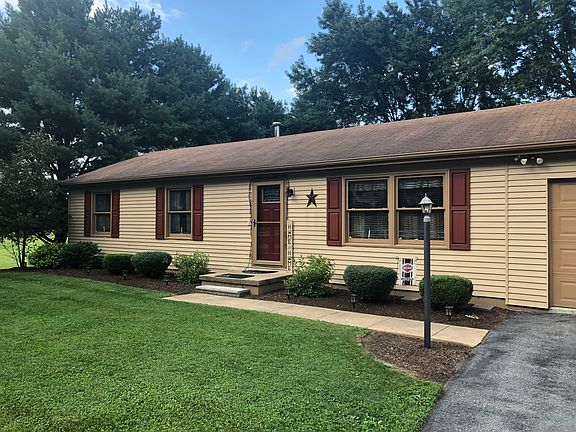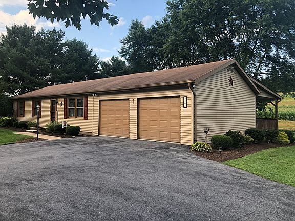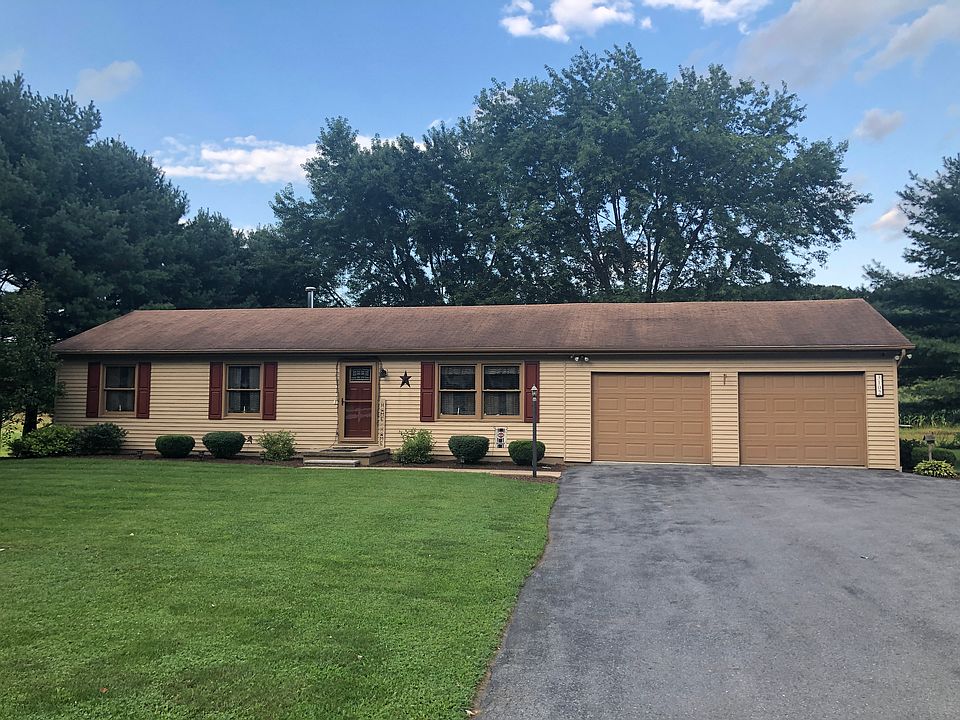 Enjoy one story living while relaxing on this large covered porch overlooking lovely views. A circular driveway adds to the lovely curb appeal of this home. Enjoy the convenience of a main floor laundry room, master bedroom with private 1/2 bath and large eat in kitchen. This home has been meticulously maintained throughout and is move in ready. Add the convenience of an attached double car garage and finished lower level and you have a home that will not last long.