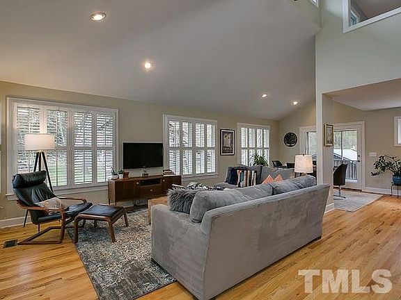 Rarity on Ridge! Here is your opportunity to own this modern farmhouse! Boasting walls of windows affording loads of natural light, cathedral ceilings on main floor, updated kitchen with gorgeous granite countertops, hardwood floors throughout, open concept and so much more! Massive fenced yard with rustic out building, screened porch and deck - perfect for outdoor fun! First floor master - wow! Convenient to Duke & UNC. Plenty of walking trails nearby! Don't miss this one!