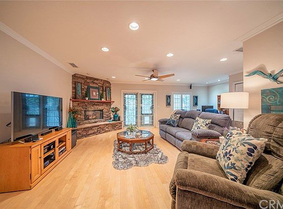 - Recessed Lighting, Stone Counters, Block Walls, Open Floorplan, Built-in Features, Crown Molding