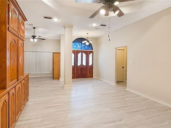 Located off Canton Rd and Sugar Rd in Edinburg, this charming 3-bedroom, 2-bath home offers 1,907 sq ft of living space with thoughtful upgrades throughout. The living and dining areas feature beautiful custom-built cabinetry that adds both style and function. Enjoy energy efficiency with solar screens and the convenience of a water softener system. Outside, you’ll love the spacious backyard featuring a custom brick oven, seating wall, and mature shade trees—perfect for entertaining or relaxing outdoors. A detached storage building provides extra space for your tools and gear. With its ideal location, custom details, and inviting outdoor living area, this home is a must-see!
