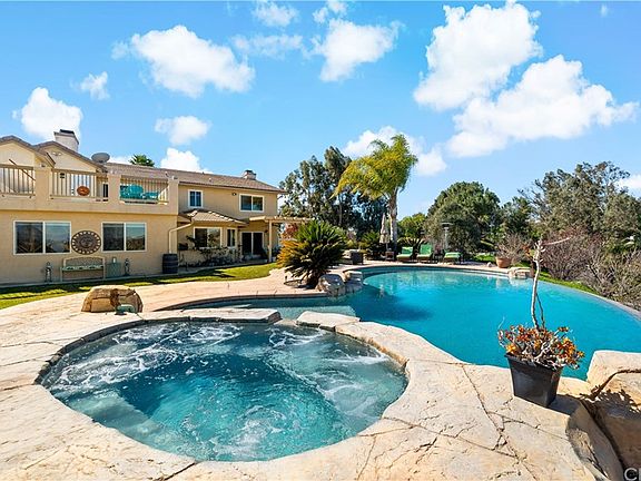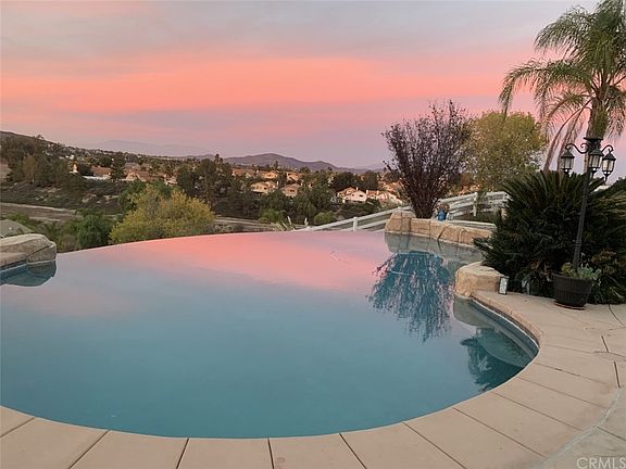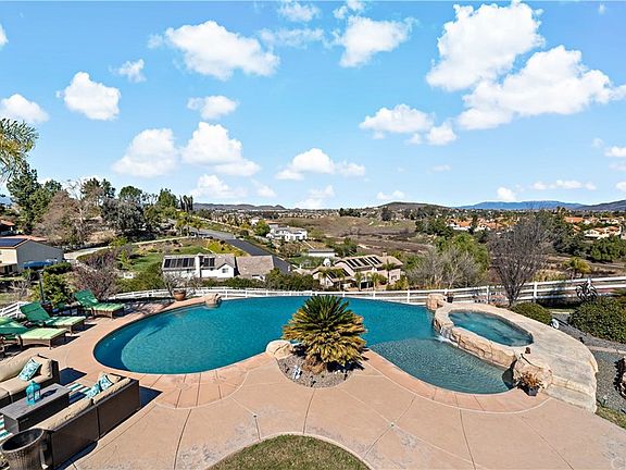 Wonderful 4 bed, 2.5 bath, approx 3,583 sq ft pool & spa home with amazing, panoramic views from the backyard and upper deck. This lovely home and property offers a lifestyle of comfort & fun w peaceful vistas to enjoy your time w family and friends. The covered front porch welcomes you as you step into the warmly lit, elegant entry foyer w a graceful stairway to the second floor. The downstairs office can be used as a 5th bedroom, den, fitness room or homeschooling. The large living room w fireplace and formal dining area is currently used as a great game room and features wood flooring and dual french doors leading to the alumawood covered patio. The open kitchen features granite counter tops, a breakfast bar, recessed lighting and stainless steel appliances and faces the informal breakfast area with window seating that overlooks the pool and valley. The inviting family room overlooks the pool and is perfect for movie nights or the big game w an oversize screen and newer projector. The spacious master has an incredible view and features custom paint and an accent wall w elevated chair rails and the master bath features a free standing tub w shower, separate sinks and walk-in closet. The large secondary bedrooms are served by the upgraded hall bath. An upstairs viewing deck is perfect for enjoying morning coffee or evening city lights. If you are ready to wake up to views w hot air balloons and snow capped mountains w a backyard to host your guests, come and see this home.