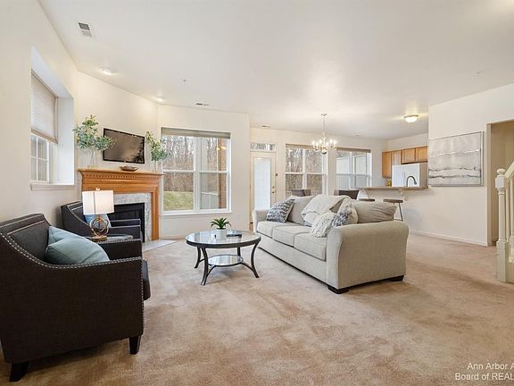 Location is everything and at Berkshire Creek condominiums you are surrounded by modern suburban amenities. Move right in to this beautiful open concept condo with private views! Kitchen with plenty of cabinetry, breakfast bar and appliance included. The 1st floor also offers a huge living/family room with gas fireplace, eating area with walkout to very large covered deck, half bathroom, and storage closets. Delightful office is perfect for working from home. Upstairs features two spacious bedrooms, 2 full bathrooms and laundry room with full size washer and dryer. Primary suite with walk in closet, bathroom with spa tub and stand up shower. The second bedroom has attached full bathroom. Attached garage great for parking and storage. Great location to shopping, walking distance to parks including Gallup Park, close to major highways making for an easier commute, on the AATA bus line and a short drive to downtown Ann Arbor. Very popular site for people who work at UM Medical Campus. *Chair Lift in home is included.