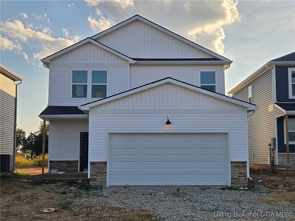 Step into the Raven floorplan, a beautifully crafted two-story home nestled in the Skipper's Ridge community. Designed with both style and practicality in mind, this 4-bedroom home provides the perfect blend of comfort and functionality, offering generous space for relaxation, entertainment, and everyday living. The main floor welcomes you with an open-concept design that flows effortlessly from the large gathering room into the dining area and the heart of the home-the kitchen. The chef's kitchen, with white cabinetry, Sparkling White quartz countertops, an island, and pantry. A main-level bedroom with a full bath offers flexible space ideal for guests or multi-generational living. Upstairs, retreat to the luxurious owner's suite with spacious walk-in closet and en-suite bathroom. Two additional bedrooms and a versatile loft provide ample space for family members or visitors. The backyard offers a patio making it the perfect space for outdoor gatherings or simply unwinding in a serene setting. Nestled along the scenic Ohio River Byway, Skipper's Ridge offers the perfect blend of peaceful surroundings and everyday accessibility. Located just five minutes from charming downtown Charlestown and only 24 minutes from the vibrant heart of Louisville, this community places you close to everything while keeping you connected to nature. Below market rates available. Photos of similar model.