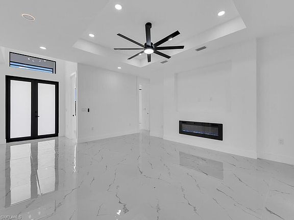 Thinking about buying a house? Let me show you why this property could be the perfect choice for you. With 4 bedrooms and 2 bathrooms, located in a quiet yet convenient neighborhood, it offers the ideal balance of comfort and privacy. The gourmet kitchen is the heart of the home, featuring stainless steel appliances, modern white cabinetry with elegant hardware, and stylish pendant lighting. Calacatta Silver quartz countertops extend throughout the kitchen, and the bathrooms boast recessed LED lighting in the showers, illuminated mirrors, and coordinating tile and window sills, creating an atmosphere of sophistication and harmony. Enjoy the elegant master suite, complete with a spacious walk-in closet, a large shower, and ample space for relaxation. LED-lit shower niches are found in all bathrooms, and a versatile fourth bedroom can serve as an office, guest room, or creative space. Built with your comfort in mind, this home includes impact-resistant windows and doors, an automatic irrigation system, a laundry room with a sink, perimeter drainage around the house, and a screened-in patio. A security camera system, an elegant concrete walkway with a geometric landscape design, and its prime location in one of Lehigh Acres' best neighborhoods, minutes from shopping, restaurants, and major highways, make this move-in ready home an opportunity not to be missed! This is the ultimate experience for finding your new home!