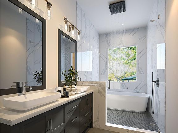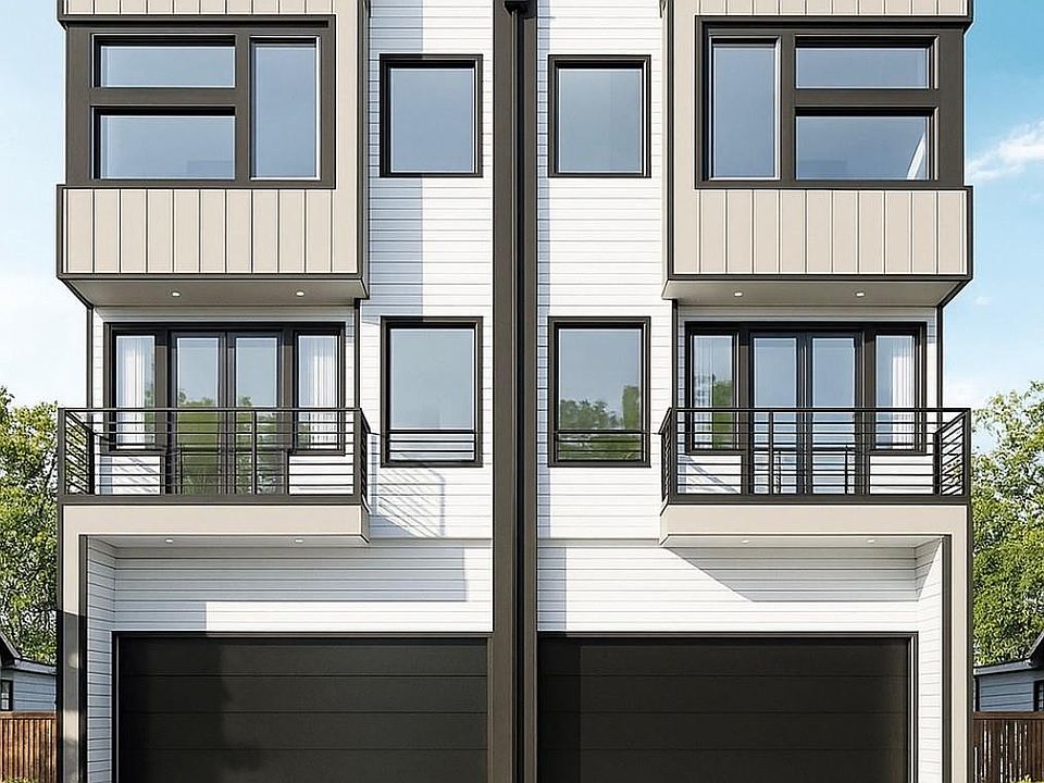 The third floor is a true retreat. The primary suite spans the rear of the home, featuring a spa-style bath with a freestanding tub, walk-in glass shower, and dual vanities. A secondary bedroom with its own full bath and a dedicated utility room add convenience and privacy. Every detail anticipates how you’ll live - from morning coffee on the balcony to hosting friends in the open-concept kitchen. Two Units Available - A & B