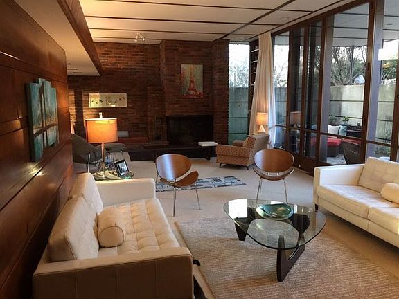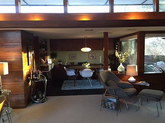 Custom-built 1957 Mid-Century Modern classic. Exceptional architecture and attention to detail in this 3BR, 2 full bath ranch designed by Bud Goetz. Floor to ceiling doors off great room open to patio and tiered yard with extensive landscaping with fire pit. Stunning window settings with custom window treatments. Fulfill your MCM dreams!