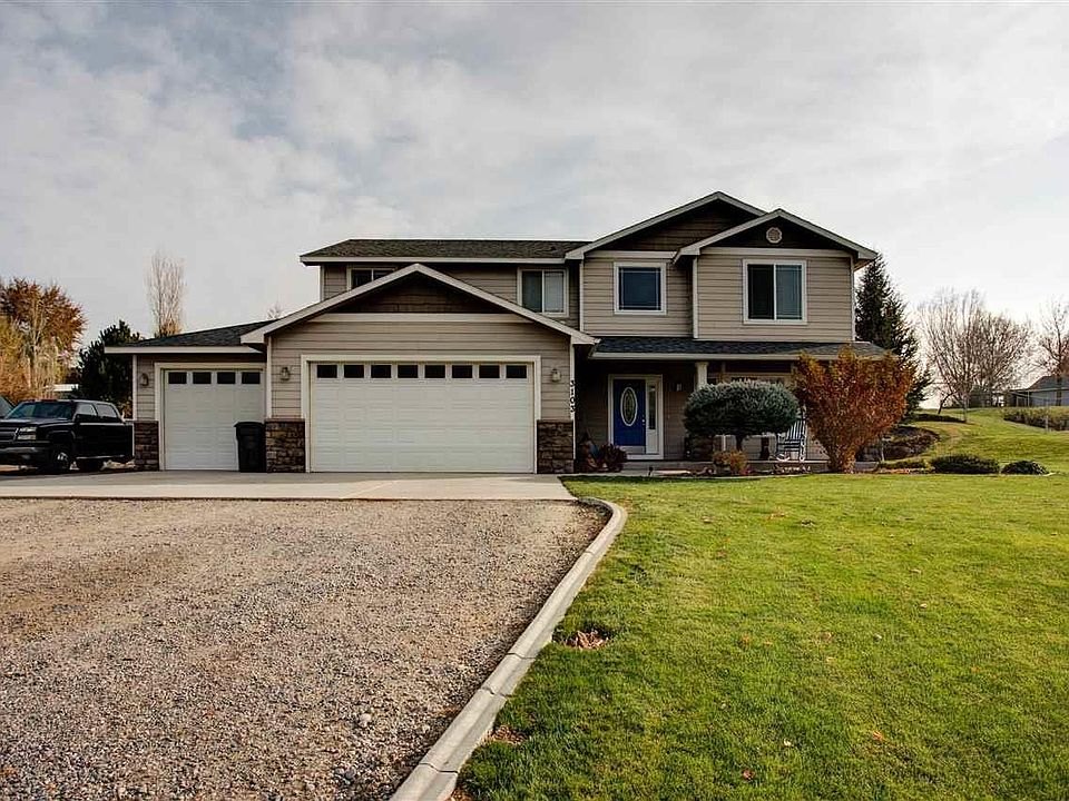 Awesome 4 Bedroom-two story home with oversized 3 car garage sited on .99 acre. Tons of room for a shop and a pool-the future shop has electricity pulled to the pad site! Located in West Kennewick, close to riding trails in El Rancho Reata, Badger Mountain South. Perfect family home with master on main level, huge walk in closet, master suite fireplace and plumbed for washer/dryer in the master closet!!. Large upstairs family room with 3 bathrooms And a large upstairs utility room! Easy flowing floor plan with tons of room for everyone in the family. The lot is beautifully landscaped, with keystone retaining walls, big garden area, East facing outdoor patio with firepit. Tons of room for parking. An increasingly difficult to find property. This is the property you grow into and stay for 20 years....limited amount of larger lots with public water on the market, this one is a must see!