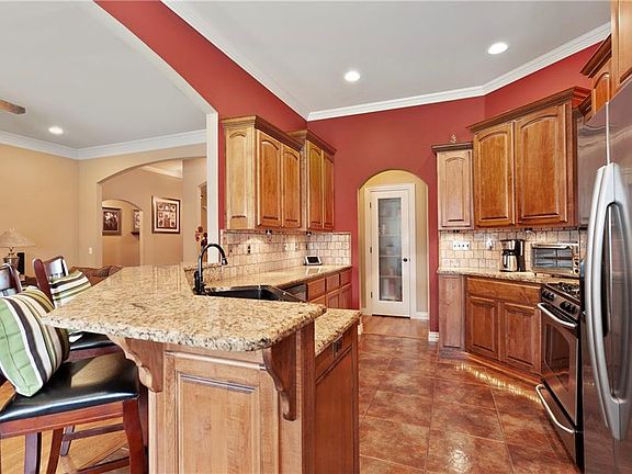 Looking for a wonderful property with all the bells and whistles? This open and split-floor plan home features large kitchen with centered gas fireplace, wood floors, formal dining with arched entries, eat-in kitchen with granite counters, pantry with etched glass door, stainless appliances recessed lighting above molding and under counters. Large master with large double entry walk-in closet and master bathroom. Good size wood privacy fenced backyard with covered patio. Within 10 mins of NWA Regional Airport, Crystal Bridges Museum, restaurants, business, I-49 and more.
