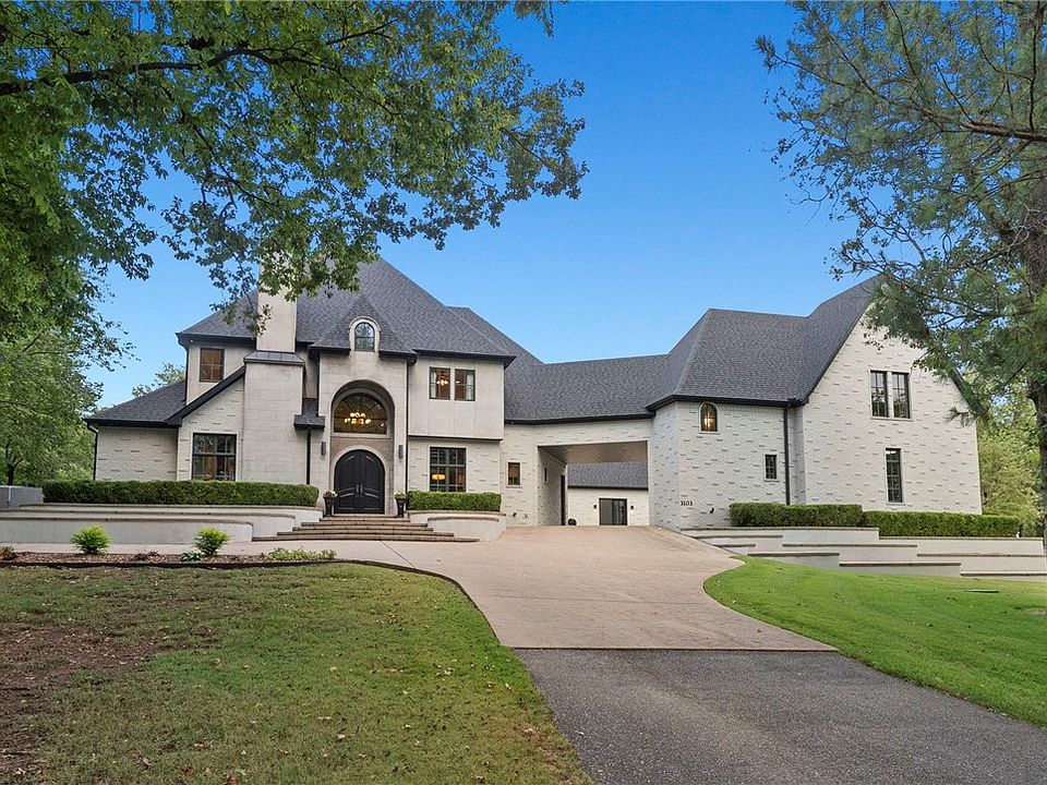 Stunning custom-built estate nestled on 2.3 park-like acres, featuring brilliant design elements throughout. A private circular driveway winds around the property. Located just ½ mile off Highway I-49, this estate offers unbeatable convenience to all that Northwest Arkansas has to offer. 5 minutes to Washington Regional, 10 minutes Mercy Hospital. The expansive primary wing spans over 1,000sf complete with a cozy sitting area, private office featuring a fireplace, and a versatile laundry room. Two spacious closets fit for royalty complete this luxurious retreat.