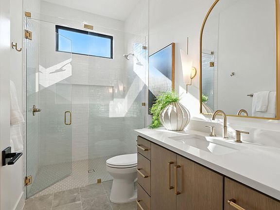 This stunning 5-bedroom, 5-bathroom residence by Paradisa showcases a seamless blend of modern design and refined luxury. A private casita with a full bath provides an ideal retreat for guests, while the main home is thoughtfully appointed with premium finishes throughout. Wide-plank oak flooring enhances the open layout, complemented by soaring vaulted ceilings that create an airy and inviting atmosphere. Built with both comfort and efficiency in mind, the home is fully insulated—including the garage—and features 8’ solid-core doors for superior privacy and elegance. Oversized Andersen windows and doors fill the interiors with natural light while offering exceptional durability and style. The resort-inspired backyard is designed for year-round enjoyment, complete with a covered patio, fully equipped outdoor kitchen, and a heated pool and spa—all easily managed through the Pentair app. Lush bamboo landscaping and a fully fenced yard with automatic irrigation and plant bubblers ensure beauty with minimal maintenance. Tailored for modern living, the home is prewired for full smart home integration, including surround sound (indoors and outdoors), security cameras, CAT6 Ethernet, and app-controlled lighting. A versatile loft offers flexible space for a game room, secondary living area, or home office, while a spacious utility room with a built-in mudroom enhances everyday convenience. The primary suite opens directly to the outdoor living area, creating a seamless connection between indoor comfort and outdoor leisure. Even the finished two-car garage reflects the home’s attention to detail, featuring commercial-grade epoxy flooring and MyQ technology for smart access.
