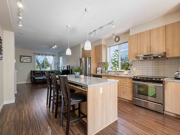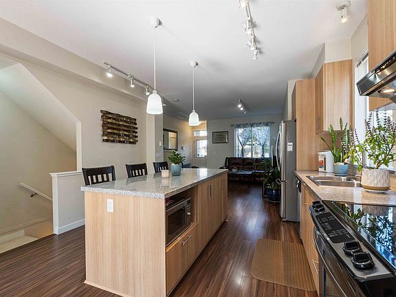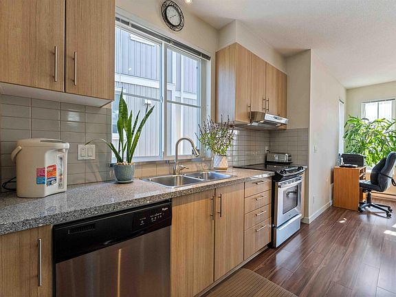 Welcome to Harvest at Westerleigh by Polygon! This END UNIT 2 BED + 2 BATH townhome boasts an open and functional layout with a kitchen bump-out and extra windows for abundant natural light. The kitchen offers s/s appliances, granite counters, and custom cabinetry, opening onto a south-facing balcony. Upstairs are 2 generous bedrooms, including a primary with double vanity ensuite and walk-in shower. Features a 2-car tandem garage plus ample street parking. Residents enjoy access to Club West with pool, hot tub, gym, and much more. Walking distance to schools, trails, parks, and just minutes to Highstreet Mall in a quiet, family-friendly community! Open House: Sat Oct 4, 2-4PM