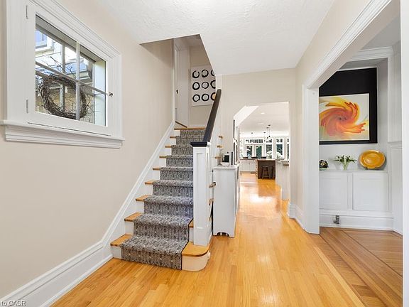 Charming home in the heart of Burlington's prestigious Roseland community, on a STUNNING LOT! This beautifully expanded 4 bed, 5 bath residence offers nearly 9' ceilings on the main floor while maintaining the character of the original home. Special attention was paid to carrying the architectural details, such as the deep trim, throughout. The focus for the addition was light, thus creating a bright open concept living/kitchen area leading to the private backyard. With floor-to-ceiling Pella windows and french doors overlooking the backyard oasis, family living and entertaining, inside and out, are easy to enjoy. Step outside into your private professionally landscaped backyard oasis, with pool, pergola, hot tub, deck, stone patio, and stunning matured perennial gardens. Main floor features include a formal living room, separate dining room, and a private home office ideal for todays lifestyle. Upstairs, the expansive primary retreat impresses with approx. 9.5' ceilings, oversized windows, walk-in closet, and a 5-pc ensuite. Three additional spacious bedrooms and two more full baths complete the second level. The finished basement offers a dedicated media room complete with projector, screen, and audio equipment perfect for family movie nights or entertaining guests, gym and plenty of storage. Garage with inside entry to both mud room and basement. This is a rare and tranquil escape just minutes from top schools, the lake, downtown, shopping and more. Boiler 2025, Electrical and plumbing updated 2005/2006, roof 2006. Loved and updated along the way now ready for your next chapter.