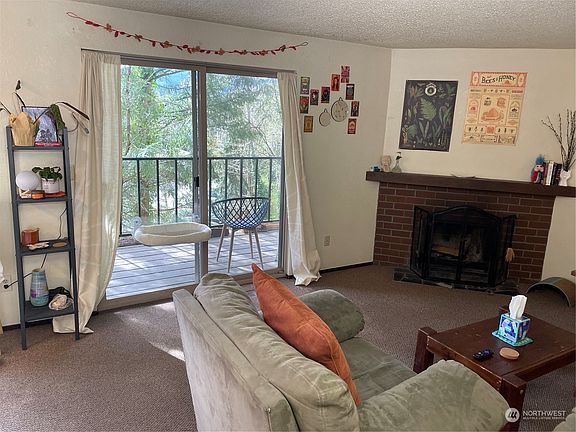 This quiet complex located across the street from an enormous arboretum features a real fireplace and S.E. facing balcony in the trees with filtered sunlight and nice territorial views. The good sized master bedroom features a large walk in closet and there is ample storage in the unit. It's a short walk to Haggen's grocery, RiteAid, Starbucks, REI, WWU campus, and myriad restaurants. HOA has strong financials and keeps the buildings in good condition as well as keeping dues low! Ample parking with 14 visitor spaces. Tenants are a mix of owner occupant 50%/student 50%. Dogs and cats allowed, and no rental cap! Situated near Fairhaven in a great school district this is perfect for the investment minded buyer or as a home in a prime location!
