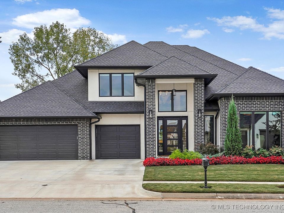 Experience refined living in this like-new Chase Ryan masterpiece, perfectly situated in a premier gated community within the coveted Jenks School District. This elegant 4-bedroom, 4.5-bath residence showcases exceptional craftsmanship, soaring vaulted ceilings, and an open, sun-filled floor plan designed for both comfort and entertaining. The chef's kitchen is a true showpiece with quartz countertops, an oversized island, coffee bar, and an expansive walk-in pantry. Two private suites are conveniently located on the main level, offering flexibility for family or guests. Premium details includes: 6 inch foam insulated exterior walls, a tankless water heater, epoxy-coated garage floors with dual 220V EV plug-ins, and smart home features including all full sprinkler and security system. Enjoy outdoor living in the fully fenced backyard, offering privacy and space to unwind. A perfect harmony of luxury, function, and modern design - this home truly has it all. Seller is a licensed realtor in the state of OK.