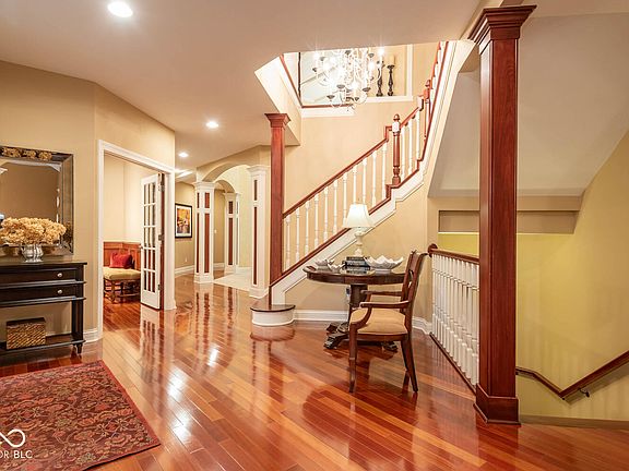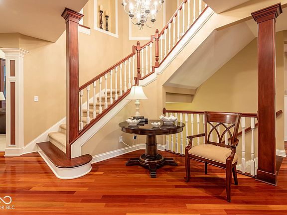 Peaceful, Stunning, and just Simply Lovely! This custom designed home combines casual elegance with timeless style to create a perfect retreat on 8 gorgeous acres. A perfect design for entertaining, this home offers beauty and fine craftsmanship with spacious rooms and gathering areas. With 5 bedrooms and a bonus room, all with en suite baths (a total of 6 full baths), there's room for a large household. 4 fireplaces, unique architectural ceilings, rich custom woodwork, and abundant, large windows grace the common areas, which include a handsome library/study, a magnificent dining room and a lower-level open span recreation area with a kitchen/bar area. You will also enjoy the fabulous open kitchen, casual dining area, and a stunning great room with ceilings open to the 2nd level and floor-to-ceiling windows, all warmed by a very large wood-burning fireplace. Large mature trees grace the park-like grounds and provide the perfect setting for this brick and limestone home. The entire estate is fully fenced and secure. This property is a rare find, and the outdoor spaces to relax and enjoy the surrounding nature make it so very inviting. Quite convenient is a 3-car attached garage and a detached garage and shop with 4 bays, 2 of which have high overhead doors to accommodate a motor coach or large boat. This elegant home has the amenities you would expect along with many pleasant surprises. Full details and specifications are provided in the attached document and the pictures tell the story of great design, classic style, and an eye to detail. A great location, just 7 minutes from east side shopping, 10 minutes to IU and downtown Bloomington, 10 minutes to Lake Monroe!