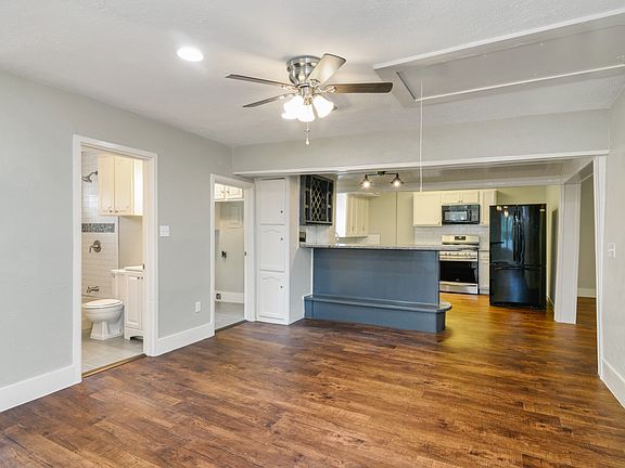 Large paved patioStainless appliancesGranite counter topsOpen kitchenBreakfast bar counter topPlumbing fixturesBathtub tile surrounds