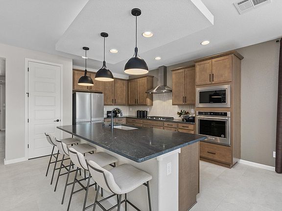 Brand new, never-lived-in Silver-Creek by Pulte. Situatied on an oversized lot, this home has a fantastic yard, backing to an open berm. The light, quartz and porcelain countertops contrast with the dark Arid cabinets throughout to mnake the finishes in this home pop. The updated and expanded floor plan includes separated bedrooms for extra peace-and-quiet. Large-format ceramic tile flooring in all wet areas and Gathering Room looks and feels amazing. The Owner's Suite includes a bay window for added space, light and elegance. No homes behind mean great privacy. Green-Build for extreme efficiency and comfort. Small park down the street and a huge 2-acre community park with basketball court and covered eating areas around the corner. Must see today!