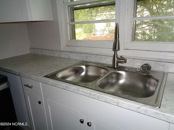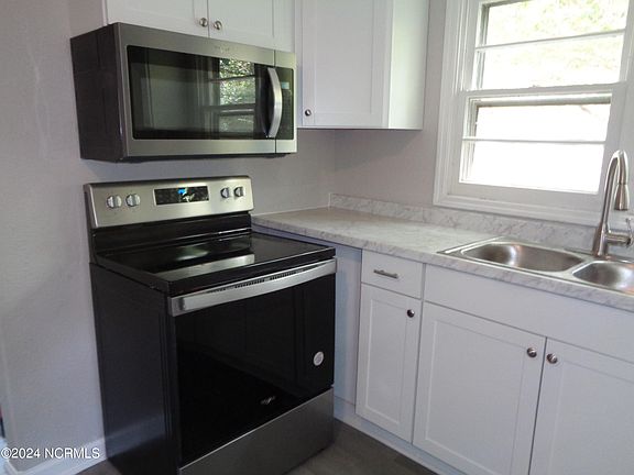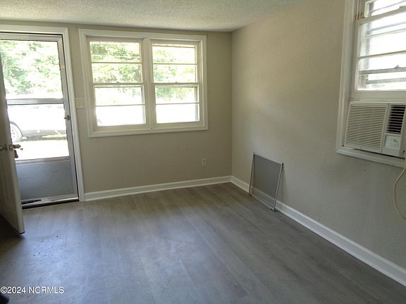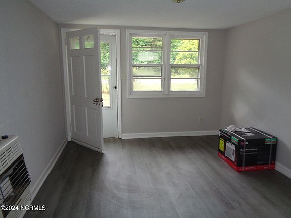 This bungalow has been completely remodeled on the interior. In addition to fresh paint, new LVT flooring has been installed throughout the home. Bathroom has new toilet, new vanity, new tub & shower, new hardware for vanity & shower, new light, and new exhaust fan. Kitchen has been upgraded with new cabinets and appliances, including smooth top stove, microwave, refrigerator, and hot water heater. Two new window units cool and heat the home. The back door and window shutters are also new. The septic tank was replaced in 2016, and a new roof was installed in November 2023.