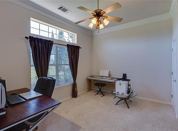 From the bright front entry to the serene sun room, this 3 bedroom house (plus a study!) is the perfect place to call home. The kitchen features under cabinet lighting, tons of counter and cabinet space and a spacious breakfast area open to the living room. The master suite has 2 walk in closets, dual sinks, and stand up shower. Laminate wood flooring throughout! Over 2ac with mature trees, detached 2 car garage or workshop with 220v electric. Separate septic and electric hookups for RV. New heat pump, new 50gal AND tankless waterheaters! LED lighting, dbl crown molding, solar screens, half bath in shop, and more! Whether you like to entertain or just sit back and relax, this home is perfect for you.