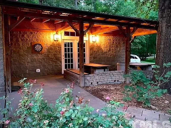 Resting on a little hill overlooking peaceful gardens and a small pond. Main House Guest House on this lovely parcel! Enchanting Property with a Contemporary Home built with 11' CEILINGS, concrete floors, and exterior. HANDICAP FEATURES! This environmentally friendly design adds a sleek, modern touch while keeping sustainability in mind. There's an awesome GUEST HOUSE (689 sqft w/full kitchen, full bath, living room, office & bedroom)- PERFECT FOR MULTI-GENERATIONAL LIVING! This one-of-a-kind home offers the perfect blend of modern elegance and natural beauty. This stunning retreat features an open floor plan and sun-drenched living spaces that create a warm and inviting atmosphere. Solar Panels and house design make this property energy efficient! Set on a picturesque 2.36-acre lot, the property includes a beautifully designed main home and a separate, fully equipped cottage with a screened porch—ideal for extended family, guest accommodations, an artist's studio, or an income-generating Airbnb rental. Step outside, take in the picturesque pond views, charming arched bridge, and unwind by the cozy fire pit on crisp evenings. The property is a gardener's paradise, with established gardens weaving throughout the landscape. With no HOA, you'll enjoy the privacy and tranquility of this special setting. Attached two-car garage. Two additional structures - A workshop, with electricity, and a separate shed for additional storage Per FEMA not in a flood zone. No flood insurance required. Peaceful, private location - yet close to modern conveniences