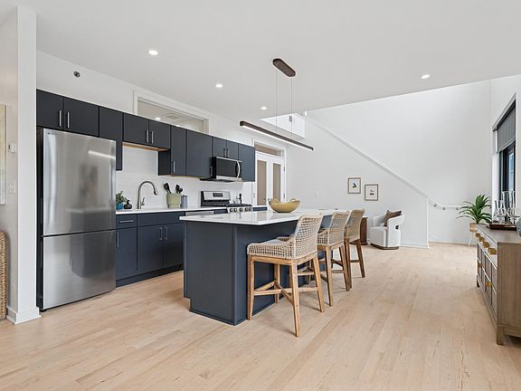 Rare Two-Story Top-Floor Condo at The Loop – Fully Remodeled with Expansive Outdoor Living. Thoughtfully and thoroughly remodeled, this condo stands out with two private outdoor spaces, including one of the largest private rooftop decks you’ll find in Minneapolis. Designed with comfort and functionality in mind, the open-concept layout features soaring vaulted ceilings, abundant natural light, and a large center island with built-in electrical—a unique upgrade not found in other units. The sleek stainless steel appliances, custom cabinetry, and high-end finishes complete the modern main floor. The main-level primary suite offers a private retreat with a spacious walk-in closet, and an en-suite bath featuring dual vanities, a separate soaking tub, and a glass-enclosed shower. Upstairs, you’ll find a versatile loft-style living area perfect for a media room, home office, or guest lounge. It includes a second oversized bedroom, full bathroom, walk-in closet, and access to the showstopping rooftop deck. Additional highlights include in-unit laundry, two assigned spaces in a climate-controlled garage, and access to The Loop’s premier amenities: a fitness center, community lounge, and conference spaces. Located just steps from the Midtown Greenway and minutes from Lake Bde Maka Ska, Lake of the Isles, popular dining spots, cafes, and boutiques. **Rentals allowed**