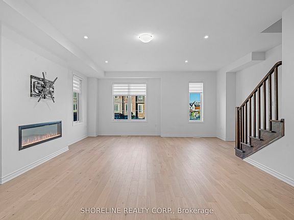 Welcome to 3104 William Cutmore Blvd, a 4-bedroom, 4-bathroom, 2,333 SqFt end-unit townhome for lease in one of Oakville's most exciting new communities. This freehold townhome offers all the square footage you'd expect from a detached property with the lower maintenance perks of a town. As an end-unit, there's added privacy and more natural light. You'll feel the difference as soon as you walk in as it feels more like a semi-detached home. On the main level, the built-in double garage has direct access into the home. The second floor has the kitchen and living space which are open-concept, bright with potlights and natural light, and thoughtfully designed for everyday living or entertaining. A covered balcony off the kitchen means you can step outside year-round rain or shine. The kitchen comes equipped with stainless steel appliances and ample counter space. Nearby, the electric fireplace in the living room adds a cozy focal point which is modern, sleek, and functional. Upstairs, three of the four bedrooms are located on the third level, keeping your living and sleeping quarters pleasantly separate. There's a full-size laundry closet up here too, saving you from hauling laundry up and down the stairs. Zebra blinds throughout the home keep things cool, clean-looking, and functional. Above it all, the large rooftop patio gives you even more usable space whether it's for quiet evenings or casual weekend hangs. Location-wise, it doesn't get much more convenient. You're in close proximity to all the essentials like Costco, Walmart, Canadian Tire, and highways such as the QEW and 403. Tenants will be responsible for all utilities (including hot water tank rental), as well as lawn care and snow removal. If you're looking for a modern, functional place with room to grow, this could be the one.