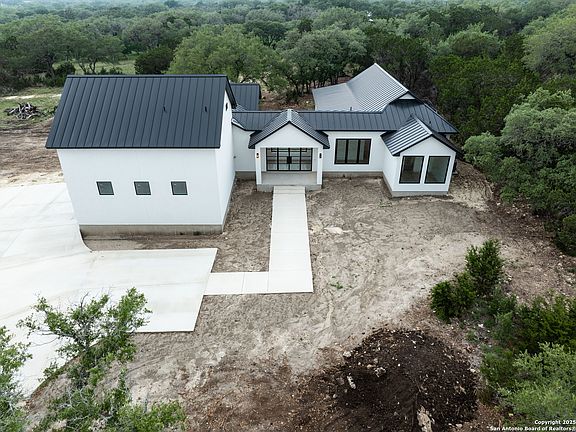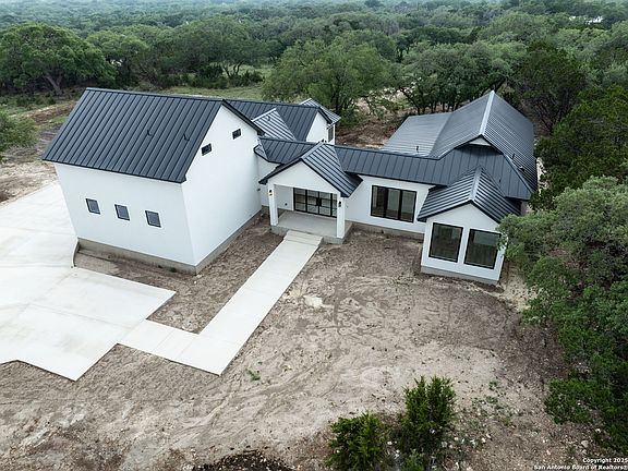 Incredible Opportunity to Customize Your Dream Home on 5+ Acres in Gated, Horse-Friendly Community! This stunning new construction custom home project is underway and ready for your finishing touches! The home boasts a beautiful floor plan with soaring vaulted ceilings and expansive views of the Texas Hill Country. Designed with luxury in mind, features include two primary suites (one upstairs, one down), an open-concept living and dining area as well as a large covered patio perfect for taking in peaceful mornings and star-filled nights. The home currently stands mostly completed and will be sold as-is, offering a rare chance for an investor, builder, or buyer to bring their vision to life. High-end details like custom cabinetry, quartz countertops, recessed lightning, flooring, tile work, showers, sinks, doors, garage, concrete driveway and a durable metal roof are already in place - just waiting for someone to complete the final stages. Don't miss out on making this Hill Country dream home your reality!