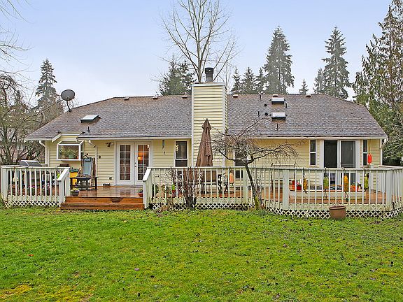 A truly idyllic setting, this rambler backs up into a half-acre of private woods with a pond, birch trees and wild birds. The 3bd/1.75ba home is anchored by the open kitchen, dining and sitting room layout and a separate living room with a wood fireplace. The expansive master suite leads out to the deck and the garden. An oasis just 15 miles from downtown Seattle.
