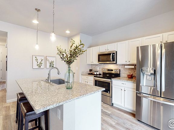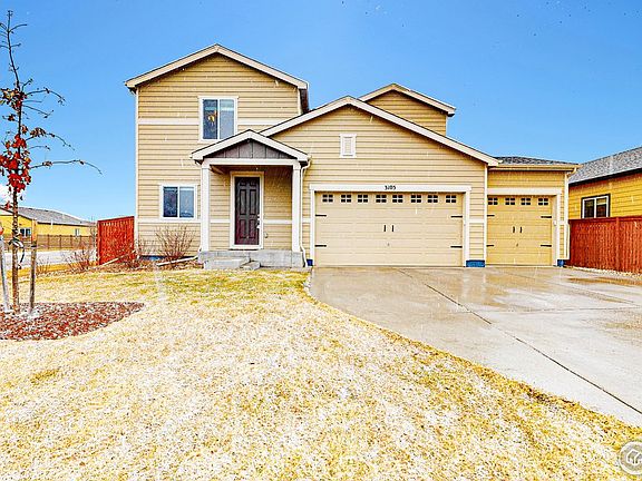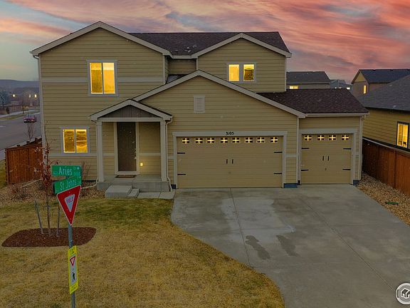 Beautiful Mountain Views! Move In Ready! This beautiful home dons exceptional features: luxury vinyl plank flooring, granite countertops, stainless steel appliances and an industrial kitchen sink. Full of natural light and open floor concept gives this home plenty of possibilities. Elegant French Doors lead you to the main floor office. The upstairs loft is perfect for extra living space or future 4th bedroom. Convenient upstairs laundry room with washer and dryer. The master bedroom is perfect for relaxation and connects to an ensuite master bath and closet. The backyard has an extended patio with a pergola- perfect for watching the sunset. Raised gardening bins and newly mulched landscape. Spacious 3 car garage. Close to shopping and easy access to HWY 34 and I25.