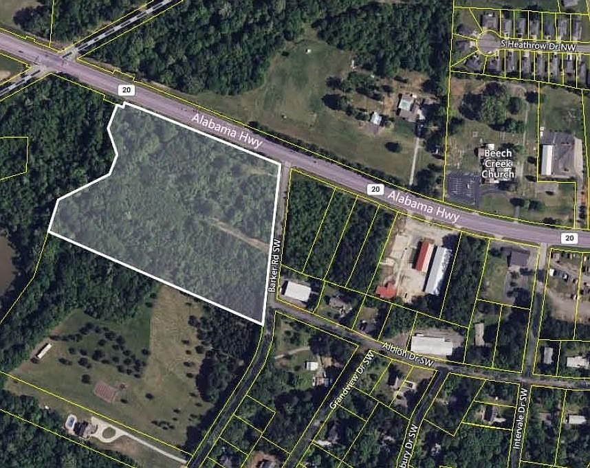 12.27-acre commercial property zoned C-C, offering significant potential for development. The land features a creek and a spring-fed pond. On January 24, 2018, the Floyd County Board of Commissioners and Rome/Floyd Planning Department approved a special use permit for an RV park on this site. The property boasts 659 feet of road frontage along Hwy 20 and 701 feet on Barker Rd, providing excellent accessibility. The site has been professionally surveyed to ensure efficient ingress and egress for optimal traffic flow.