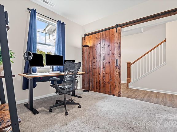 Step inside to find low-maintenance vinyl plank flooring throughout the main level, paired with fresh paint for a clean, updated feel. A custom barn door adds character to the dedicated office space—ideal for working from home. The spacious loft area upstairs provides flexible space for a playroom, media room, or additional lounge area.