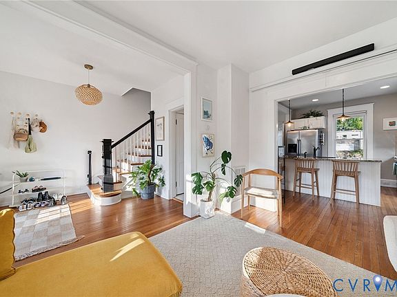 Welcome to this beautifully maintained and thoughtfully updated 3-bedroom, 1.5-bathroom home in Richmond’s vibrant Northside, just steps from Brookland Park Boulevard. Enjoy walkable access to local favorites like Julio’s, The Smoky Mug, Ruby Scoops, and Fuzzy Cactus—all while coming home to comfort and style. Inside, the first floor living space is a focal point, featuring ornate floor tile, original hardwoods, granite countertops, stainless steel appliances, gas cooking, custom built-in dining banquette with coffee bar, and an eat-in island in the kitchen. The front living room is bright and spacious with brick mantel and 1920's molding and trim adding character and functionality to the home. Throughout the house, you’ll find plenty of natural light, restored original hardware, and updated lighting fixtures that blend historic Richmond with modern updates. Upstairs, three spacious bedrooms offer ample storage, while the updated full bath boasts a contemporary tiled shower, modern vanity with storage, and classic penny tile flooring. The clean, oversized basement provides versatile space for storage, workshop, or a potential craft area. Outdoor living is just as inviting, with a welcoming front porch and a rear fenced backyard complete with an updated paver patio—perfect for entertaining, relaxing, or play. Space for two off-street parking spaces adds convenience to the rear of the property. This Northside home combines character, updates, and a walkable lifestyle in one of Richmond’s exciting neighborhoods.