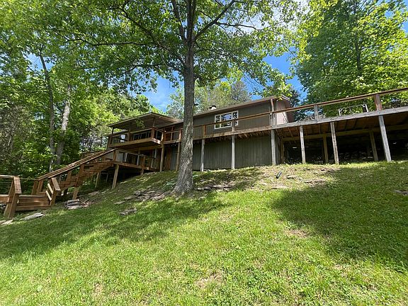 Dreaming of living on a lake that has a peaceful and private setting? Check out this place! Three waterfront lots with approximately 275 ft on Elmer Davis. This state lake is known for its fishing and with no wake it is perfect for canoeing or etc. (just NO swimming). Hideaway Hills has a nice in-ground pool, club house, & play ground. Enjoying setting on one of the multiple decks and enjoying the wildlife and the tranquility of your surroundings. The living room is just over 500 sq ft. Lots of room to entertain your friends and family. Loft over looking kitchen are that could be used as an office or sleeping area. Loft has an unfinished area that could be finished out for an extra room or storage area. Dining room has windows to view the lake and walkout to one of decks. The basement area is unfinished and has potential for extra space if needed. Lets get together and view this incredible property to make it yours.