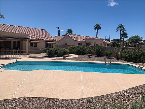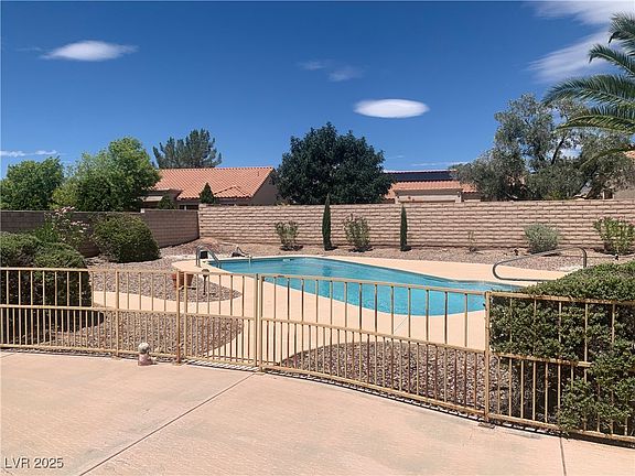 This Expanded Sandalwood Model at 1552 sqft has a Sparkling Private Pool on over 9500 sqft Lot. This great 2Bd 2Bth and 2 car garage home has been recently painted on the exterior and has gated front porch area and gate around the pool. Formal Living and dining at the front of the home and additional dining off the kitchen. Den / Office off of the Primary Bedroom with direct access to the back yard. You Can't forget about the Sun City Summerlin amenities: Golf, Pools (indoor & outdoor) Four Community Centers with Fitness Centers, Tennis, Pickle Ball, Racquetball, Bocce Courts, Softball, Social Activities and more! A little TLC will go a long way. Don't Miss Out on this one!!