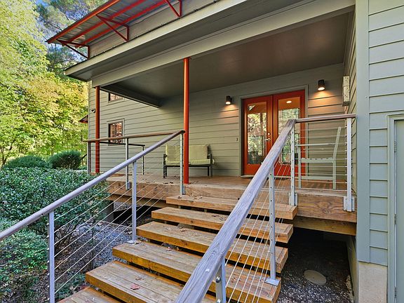 Award-winning design, the ''Davis Residence'' delivers modern clarity—clean lines, daylight, and an indoor-outdoor plan that breathes. With a four-bedroom septic in place and a design ready to accommodate, you can expand at your convenience without compromise. Daily life centers on a living/kitchen/dining core that opens to a deck/patio and tree-framed yard; sightlines pull light deep into the plan, and finishes stay honest with concrete, wood, and metal. The current two-bedroom program reads intentional—quiet, efficient, and easy to live in. The hidden ace: a full walk-up attic sized for two additional bedrooms plus a full bath; a clean path to four-bed capacity on your timeline (buyer to verify permitting). The seller's excellent design is your gain. Beneath it all, the house sits on 4-foot concrete piers—no damp basement, no creepy crawl space. A heavy plastic ground barrier with gravel keeps the under-side protected. All mechanicals live in a ground-level exterior service room—HVAC, water heater, and water softener fully surrounded by concrete. Nothing is exposed under the house, and techs can service everything without entering the living space - a clear win for air quality, durability, and convenience. Location is a legit differentiator: about half a mile to Blue Jay Point County Park—236 acres with hiking loops, the Mountains-to-Sea segment, boat ramp, shoreline fishing, playgrounds, picnic areas, and the Blue Jay Center for Environmental Education; there's even a treetop zipline/obstacle course nearby. Out here, it feels like you're alone in nature, yet you are minutes from fantastic restaurants, RDU, greenways, and everyday essentials. If you value design, flexibility, and a setting that's hard to fake, this is Raleigh's needle-in-the-haystack.