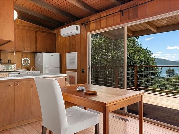 This 2-bedroom, 1-bath house sits on a hill, offering south-facing panoramic views of Clear Lake and Mount Konocti.