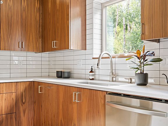 New Northwest Modern home with details and finishes influenced by mid century modern design. Benefit from the energy-efficient upgrades including high efficiency heating/cooling systems,high level of insulation, high performance windows and an independent heat recovery ventilation system. This home is located in a private cul-de-sac, built into its site that borders tranquil green space.The main level greets you with a large living room featuring vaulted ceilings,and a wall of windows flooding the interior space with natural light. The open airy living room provides a seamless transition between the adjacent dining room and kitchen. The kitchen features beautiful custom cabinetry, quartz countertops, designer lighting and tile. Wide plank oak hardwood flooring throughout the main level with a bedroom/office and half bath. Sliding glass doors open the dining/great room to an exterior deck overlooking the lush forested green space, covered by a beautiful overhang that allows you to enjoy and relax in the outdoors year round. The upper floor features a vaulted primary suite with large walk-in closet and ensuite bath with soaking tub, slate floors and designer details. One additional bedroom with high ceilings, a full bath plus a large flex bonus space. The daylight lower level features views of the adjacent forest, two bedrooms and a full bath plus a double car garage is attached to the main level. This beautiful home is Energy Star Certified for sustainability and minimal environmental impact. Embrace nature while being located just minutes to St. Vincent, Nike, Intel, and downtown Portland. Close to local shops, restaurants and hiking trails. Available now for pre-sale,estimated completion Sept 2025. *interior photos are from a different project by the same builder [Home Energy Score = 9. HES Report at https://rpt.greenbuildingregistry.com/hes/OR10242250]