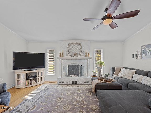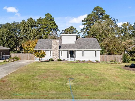 Welcome to this serene Trent Woods retreat where outdoor living and indoor comfort come together beautifully. Nestled on a lush, landscaped lot surrounded by mature trees and vibrant gardens, this inviting home offers a relaxed lifestyle in one of the area's most sought-after neighborhoods. A covered side porch and spacious back Trex deck create the perfect settings for morning coffee or evening gatherings, while raised garden beds and a gardener's shed complete the outdoor oasis. Inside, natural light fills the thoughtfully designed layout featuring double living rooms, one with a stately gas log fireplace and an additional family room overlooking the backyard. The kitchen offers ample cabinetry and counter space for everyday functionality and flow along with updated countertops and stainless steel appliances. We cannot go without talking about the cozy, private bedrooms! Three spacious bedrooms include a charming owner's suite with an open ensuite bath and a built-in armoire that adds both style and storage. With its blend of comfort, character, and outdoor living, this home captures the essence of Trent Woods living at its best. Between the prime location, beautiful upgrades, and ideal updates, this property is not going to be one for you to miss!