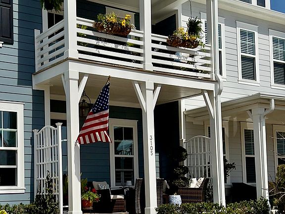 Discover elegance and modern comfort in this stunning 3-bedroom, 2.5-bathroom townhome, nestled behind the gates of Dunes West. This beautifully decorated residence boasts thoughtful updates throughout, including a hidden butler's pantry, a spacious living area that flows seamlessly into a gorgeous kitchen and dining space, and two charming front porches perfect for relaxing, sunsets and wine. A gas lantern at the entrance adds a touch of timeless charm. All bedrooms are conveniently located on the second floor, offering privacy and comfort. The attached 2-car garage provides ample storage, with additional boat storage nearby. Step outside to enjoy a prime location across from a dog park and fire pit, or take advantage of the community clubhouse, pool, and golf course. A MUST SEE!