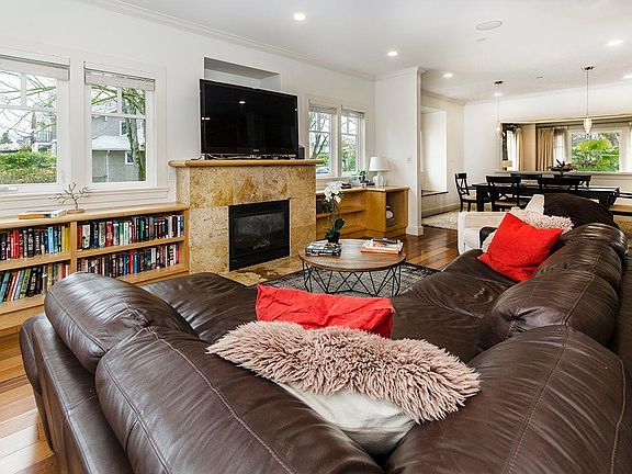 This 3100 sq. ft. furnished 4 bed, 2.5 bath house for rent in Vancouver's darling Kitsilano neighborhood is a jaw-dropping property with oh so much to offer! For outdoor lovers, this home is especially sure to impress with its 3 porches, 1 view deck , one deck off the master bedroom, and 1 back yard patio! Come home to a gorgeous living room with a cozy fireplace, hardwood floors, a chic leather sectional, ornate coffee table, soft area rug, and a flat screen TV! There is also a lovely half circle kitchen island with bar top seating or 3! Have your pick of 4 absolutely lovely bedrooms that each feature a unique interior design as well as ample space. The master bedroom is a perfect place to unwind and boasts a spa-worthy ensuite bathroom and a spacious walk-in closet!