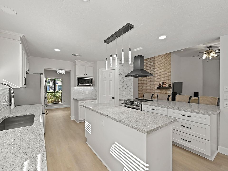 Completely renovated and customized, this stunning 4-bedroom, 2-bath home offers spacious, modern living with high-end finishes throughout. Enjoy an expansive chef’s kitchen featuring a massive island, breakfast bar, stainless steel appliances, soft-close cabinetry, under-cabinet lighting, pantry, and more—perfectly open to the family room. The primary suite is a true retreat with a newly added walk-in closet, a luxurious en suite bath with dual sinks, soaking tub, walk-in shower, and an additional closet. Includes formal dining, private office, updated flooring, lighting, fixtures, and fresh paint throughout. Relax or entertain under the new covered patio, surrounded by mature landscaping. Detached garage and in-home laundry complete the package! Call to schedule your private tour today. With true customization, you won't find anything else like it!