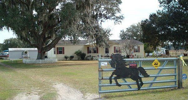 Almost 2.5 acres of scenic property move-in-ready for you and your horses (zoned for up to 3 horses per acre). They will live in the lap of luxury and the accommodations for humans aren t too bad either! The home itself boasts an open floor plan, almost 1800 square feet, well maintained, upgraded appliances, master bedroom suite, vaulted ceilings, fireplace and more. On the property sits 3 storage and utility sheds the largest of which is complete with electric and workbench. The pride and joy of the property is the Stable set up for 4 horses boasting ceiling fans in each stall, surround sound system, hay loft, wash rack and tack room. Pasture is divided for rotation purposes with a new 2 stall horse barn on one side. The property is nicely landscaped with mature oak trees, citrus trees and a garden with irrigation.